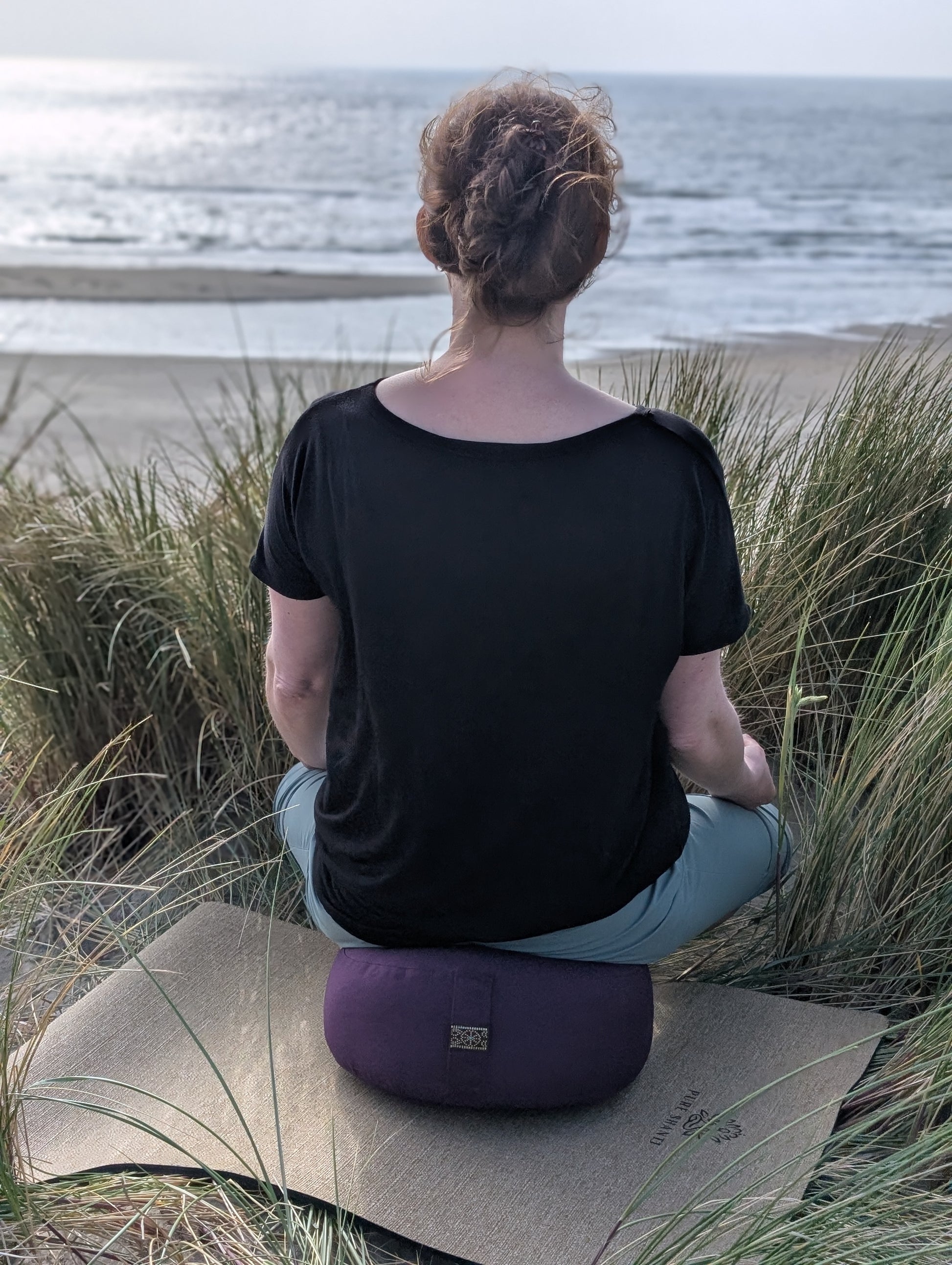 - einem PURE SHANTI Meditationskissen aus 100% Bio-Baumwolle, gefüllt mit Buchweizenspreu, deinem perfekten Begleiter für eine besonders tiefe Entspannung